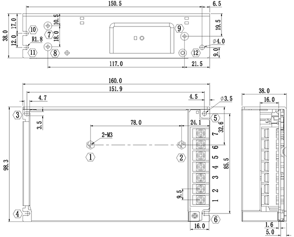 ③--⑥ ⑩--⑫ | M3 | 3mm | 7kgf.cm |