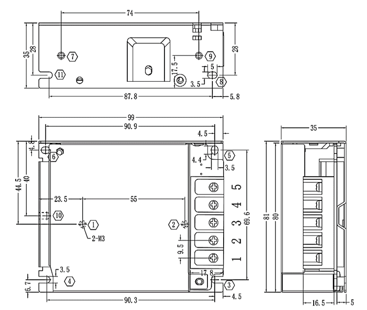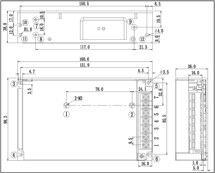qy球友会(中国)系列机械手控制系统开关电源及制动电阻尺寸图,统一适用所有系列型号产品,开关电源分单路及双路,如下: