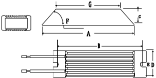 型号 | 25℃-40℃额定功率(W) | 外形尺寸(mm) | 阻值范围 | ||||||