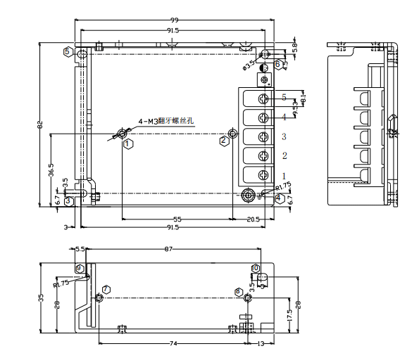 开关电源安装尺寸: