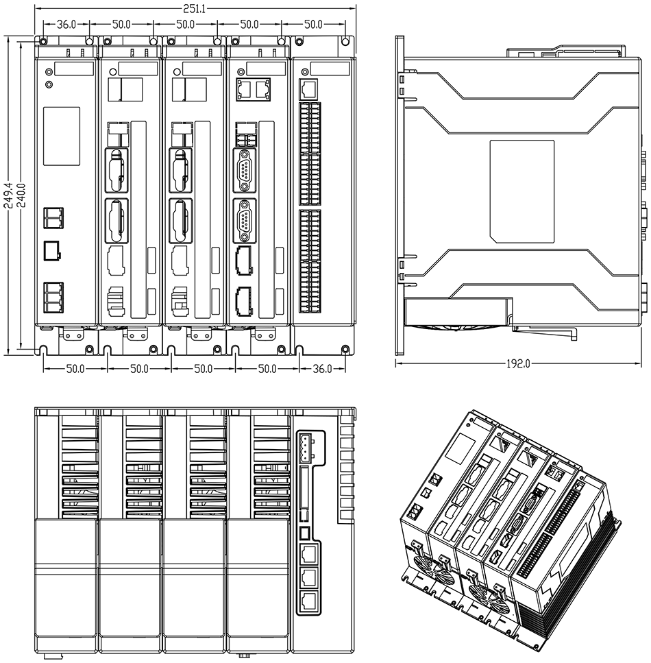 3)省略号处单元模块相同,系统轴数可选择2轴、3轴、4轴、5轴、6轴、7轴、8轴。端口连接方式相同。